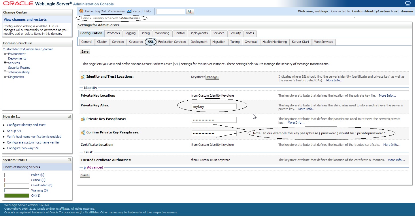 Below are the steps to configure Custom Identity and Custom Trust with Weblogic Server :
