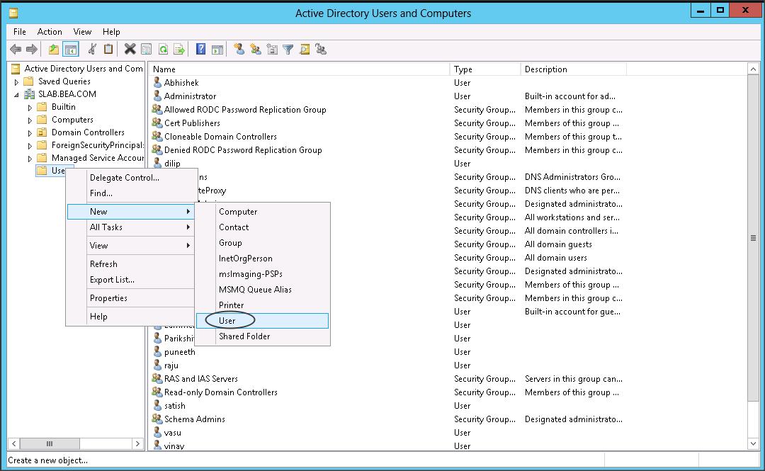 AD Machine (Windows Server 2012 R2) used in this configuration is : slads.slab.bea.com