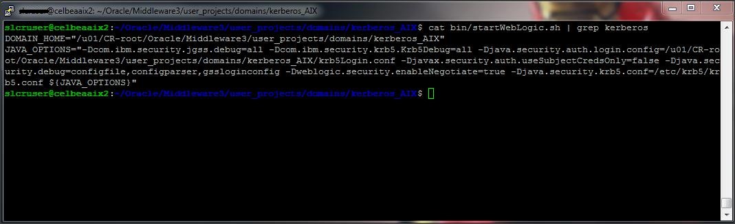 JAVA_OPTIONS=”-Dcom.ibm.security.jgss.debug=all -Djava.security.auth.login.config=/u01/CR-root/Oracle/Middleware3/user_projects/domains/kerberos_AIX/krb5Login.conf -Djavax.security.auth.useSubjectCredsOnly=false -Djava.security.debug=configfile,configparser,gssloginconfig -Dcom.ibm.security.krb5.Krb5Debug=all -Dweblogic.security.enableNegotiate=true -Djava.security.krb5.conf=/etc/krb5/krb5.conf ${JAVA_OPTIONS}”