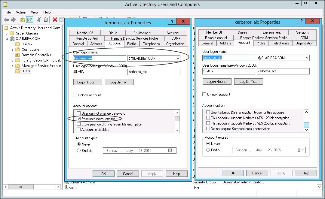 – Create a new user say, ” kerberos_aix ” on AD which will represent your Weblogic server instance.