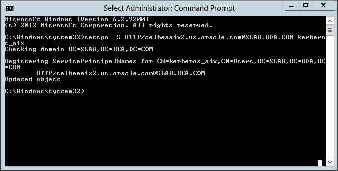 Command : setspn -S HTTP/celbeaaix2.us.oracle.com@SLAB.BEA.COM kerberos_aix