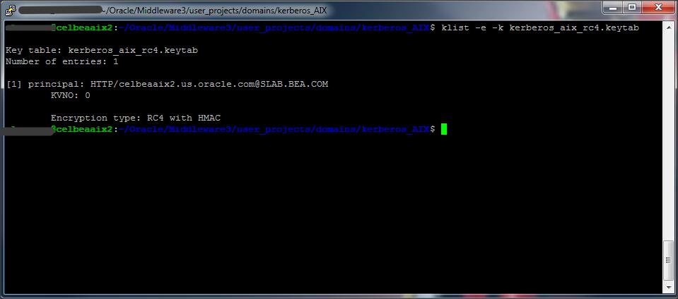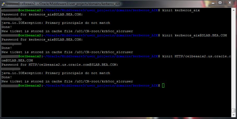 Command : kinit -k -t kerberos_aix_rc4.keytab HTTP/celbeaaix2.us.oracle.com@SLAB.BEA.COM