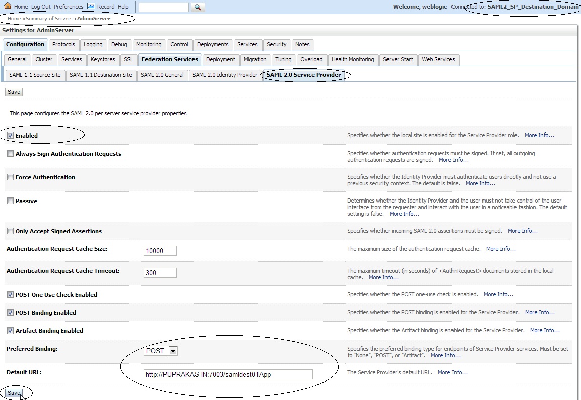 – In the following example I have created two domains ” SAML2_IDP_Source_Domain ” and ” SAML2_SP_Destination_Domain ” on Weblogic Server 12.1.1.
