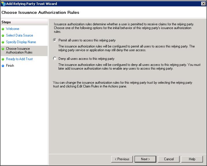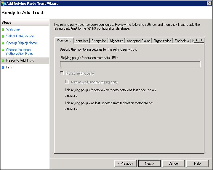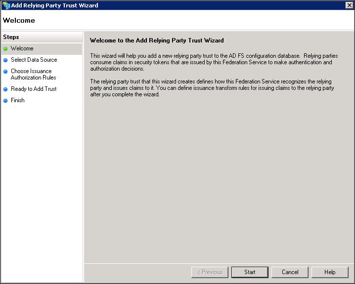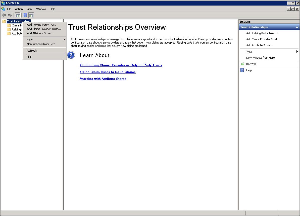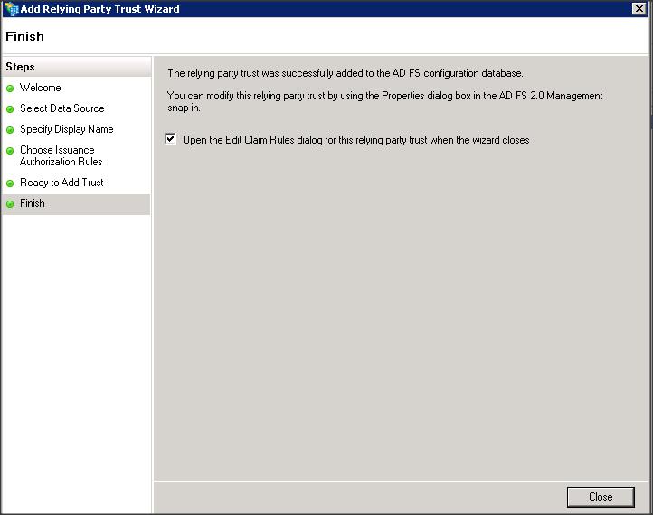 – Add a Replying Party Trust using ADFS 2.0 Management wizard
