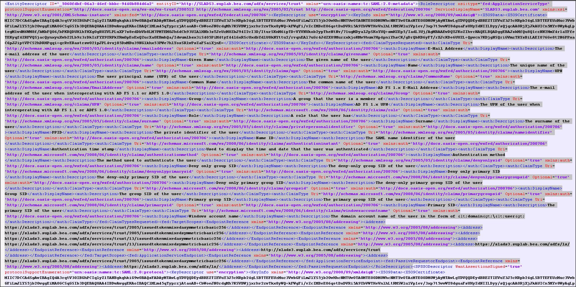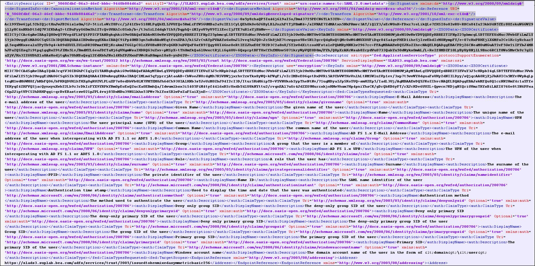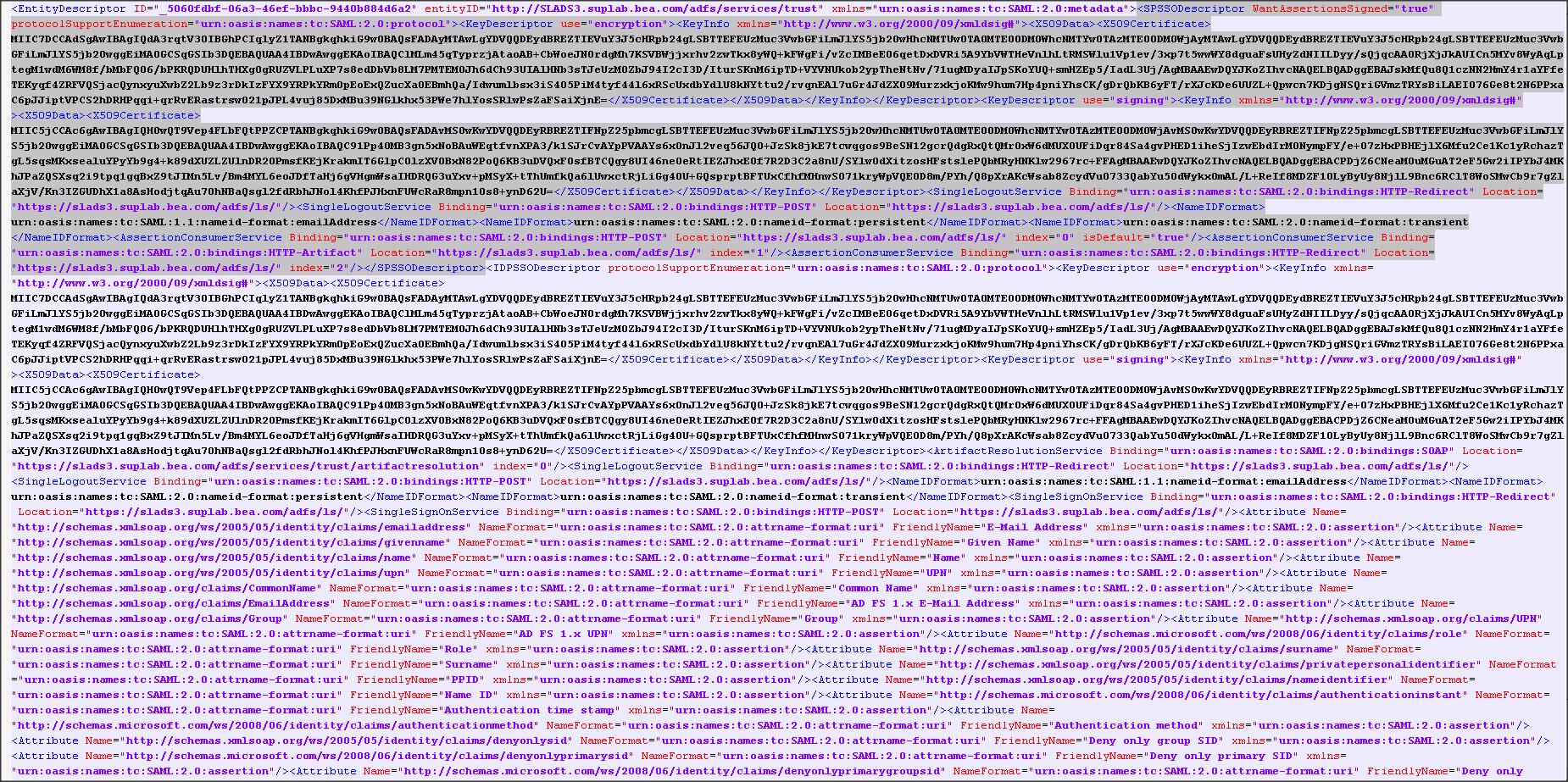 – Metadata downloaded from ADFS contains information about both SP and IDP. It also contains few tags which are not supported by WLS.