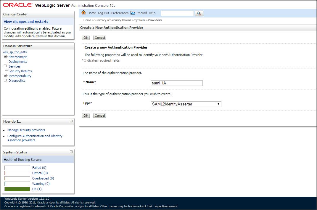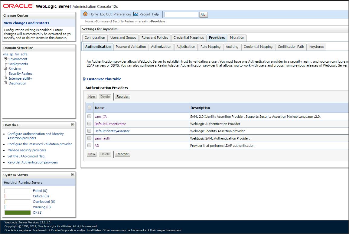 – Create an AD provider and retrieve the users from Active Directory. (Alternatively, you can create a new SAMLAuthenticator provider and enable the ” virtual user ” feature in WLS SP).