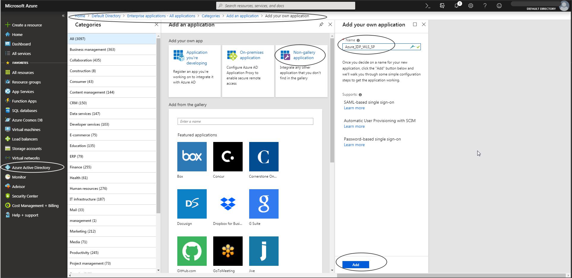 SAML Identity Provider is required to understand/accept the SAML token sent from Azure to WLS.