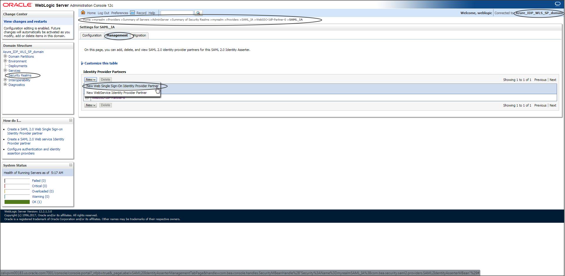 Now go to Security Realms -> Providers -> SAML Identity Asserter -> Management and create a new partner using the modified Azure IDP metadata.