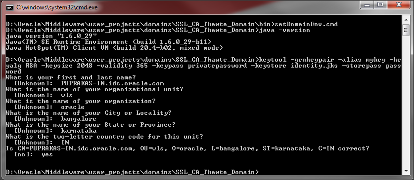 Command :  keytool -genkeypair -alias mykey -keyalg RSA -keysize 2048 -validity 365 -keypass privatepassword -keystore identity.jks -storepass password