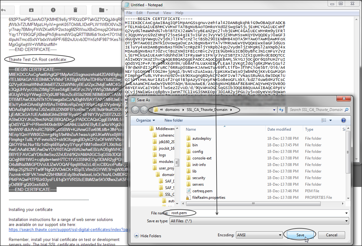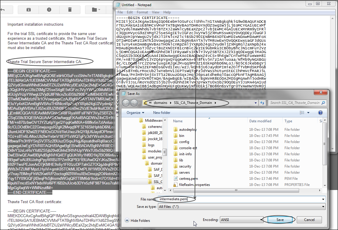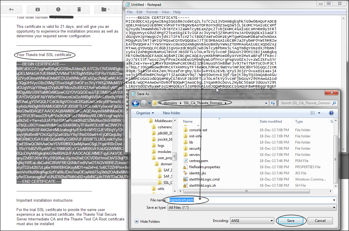 Copy the contents of each certificate from email and save it as a pem file as shown below :