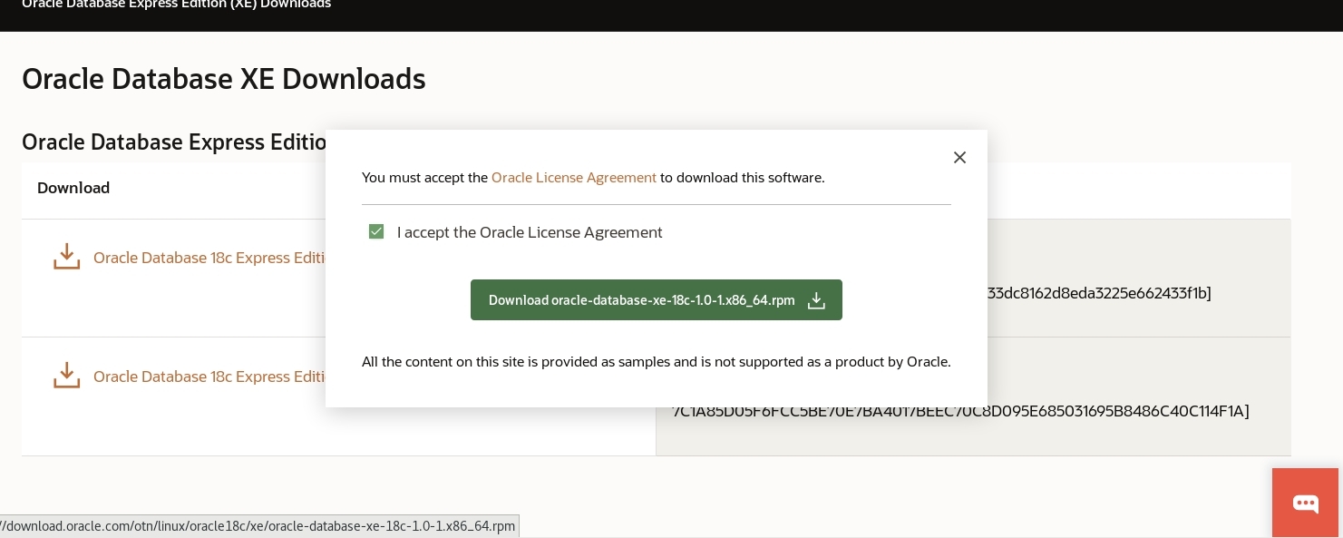 Command: curl -o oracle-database-preinstall-18c-1.0-1.el7.x86_64.rpm https://yum.oracle.com/repo/OracleLinux/OL7/latest/x86_64/getPackage/oracle-database-preinstall-18c-1.0-1.el7.x86_64.rpm