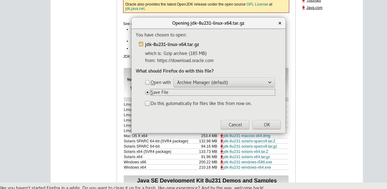 Command: tar -xvzf /refresh/home/Downloads/jdk-8u231-linux-x64.tar.gz
