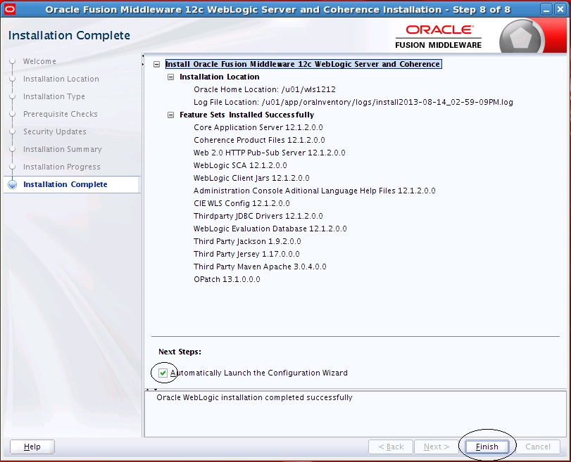 – After installing Weblogic server, you can check/select ” Automatically Launch the Configuration Wizard ” and finish the installation. This would automatically start the configuration Wizard.
