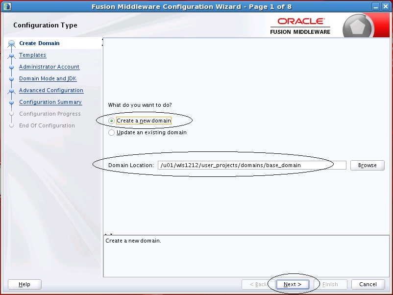 Steps to create a new WLS 12.1.2.0.0 domain :
