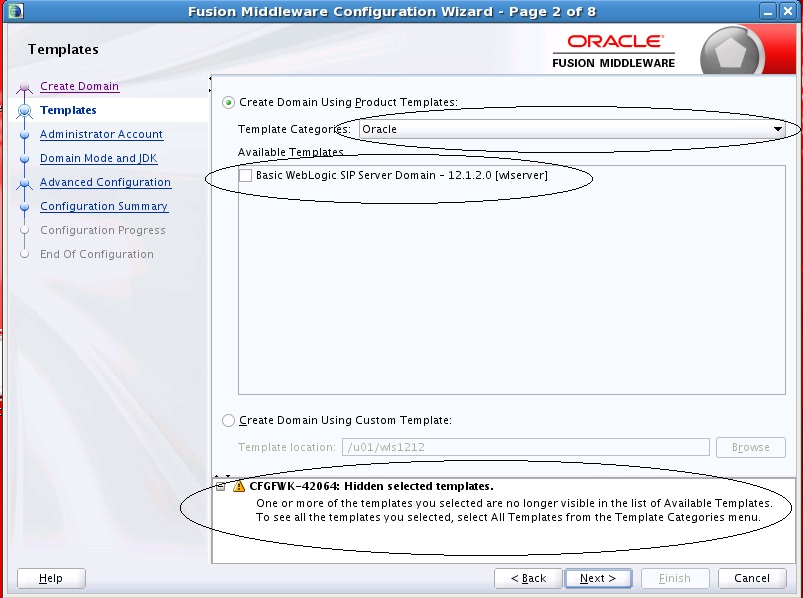 – If you cannot use GUI mode then Oracle recommends to use WLST to create a new or extended domain.