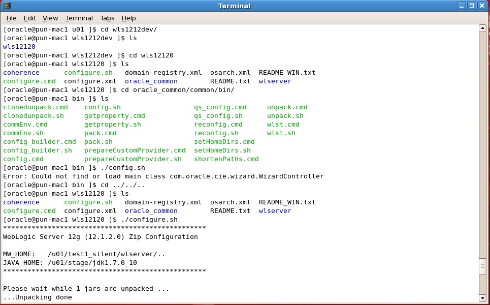 – If you have a WLS zip installer then you need to use the configure.sh script to create a basic domain instead of the config.sh script.