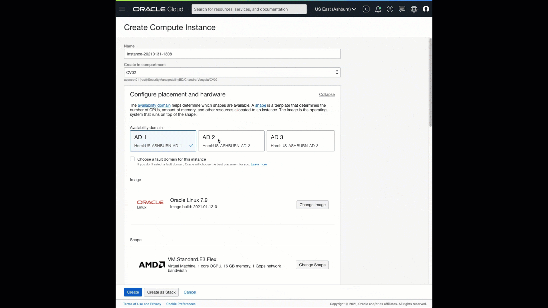 The real flexibility of Oracle Cloud is another innovation that helps lower cost by using exactly the shape you need and not just the one that fits best. As shown in the following example, you can select the CPU and the RAM you need without being constrained by a limited choice.