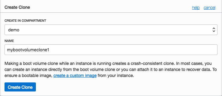 - Cloning a boot volume allows you to quickly provision an exact, isolated copy of a running instance without going through a backup and restore process. A clone of a boot volume becomes available for use within a matter of seconds, making it trivial to spin off new environments for scale up, development, QA, UAT, and troubleshooting.