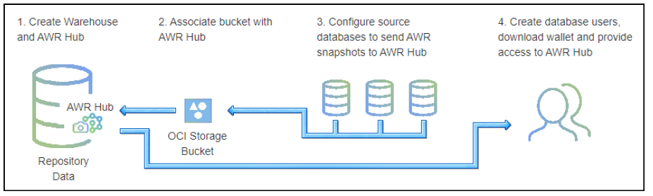 To handle AWR data from multiple databases, Operations Insights provides AWR Hub, a cloud-based repository that collects and consolidates AWR snapshots from multiple databases in your OCI tenancy.