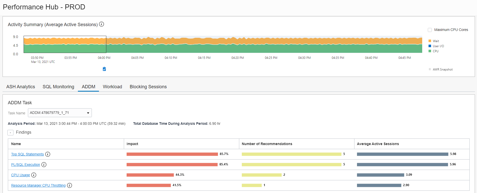 Figure 5: ADDM in the Exadata tab of Performance Hub
