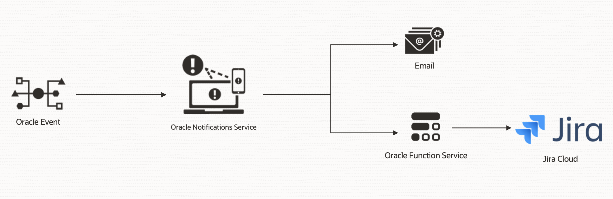 Many of the customers I work with use the Oracle Notifications service to alert their developers and DevOps teams about events happening in Oracle Cloud Infrastructure applications. Events can be of different types and for different resources like Compute Instance restarted, Object created in a bucket, etc. The Notifications service already offers out-of-the-box integrations with many services, such as Email, Functions, Slack, and PagerDuty. Many of these customers are also using ticketing systems, such as Atlassian’s Jira, to track these events, and they’ve asked about the best way to automatically file a Jira ticket when an alert happens.