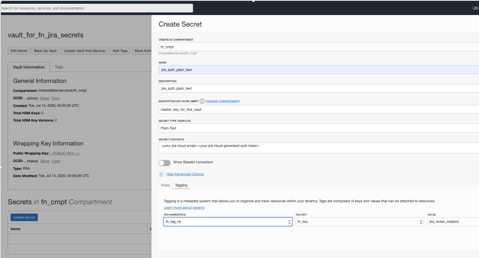 Step 1: Create Vault and Secrets in Oracle Cloud Infrastructure to Store your Jira Credentials