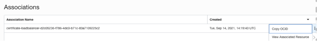 Another tool to help you keep track of which certificate is deployed on what OCI resource is associations. Associations show you what resource is using the certificate. In addition, as long as an association exists for the certificate, you will not be able to delete the certificate. This helps avoid human error while managing the certificates.