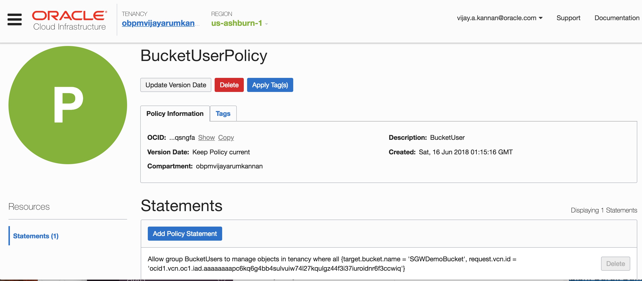 - Enhanced security for your Object Storage buckets: You can limit access to Object Storage buckets from an authorized VCN or from a specific range of IP addresses within the subnet. You can add conditional references to VCN and IP addresses in IAM policies, which can only be satisfied when you initiate connections through a service gateway.