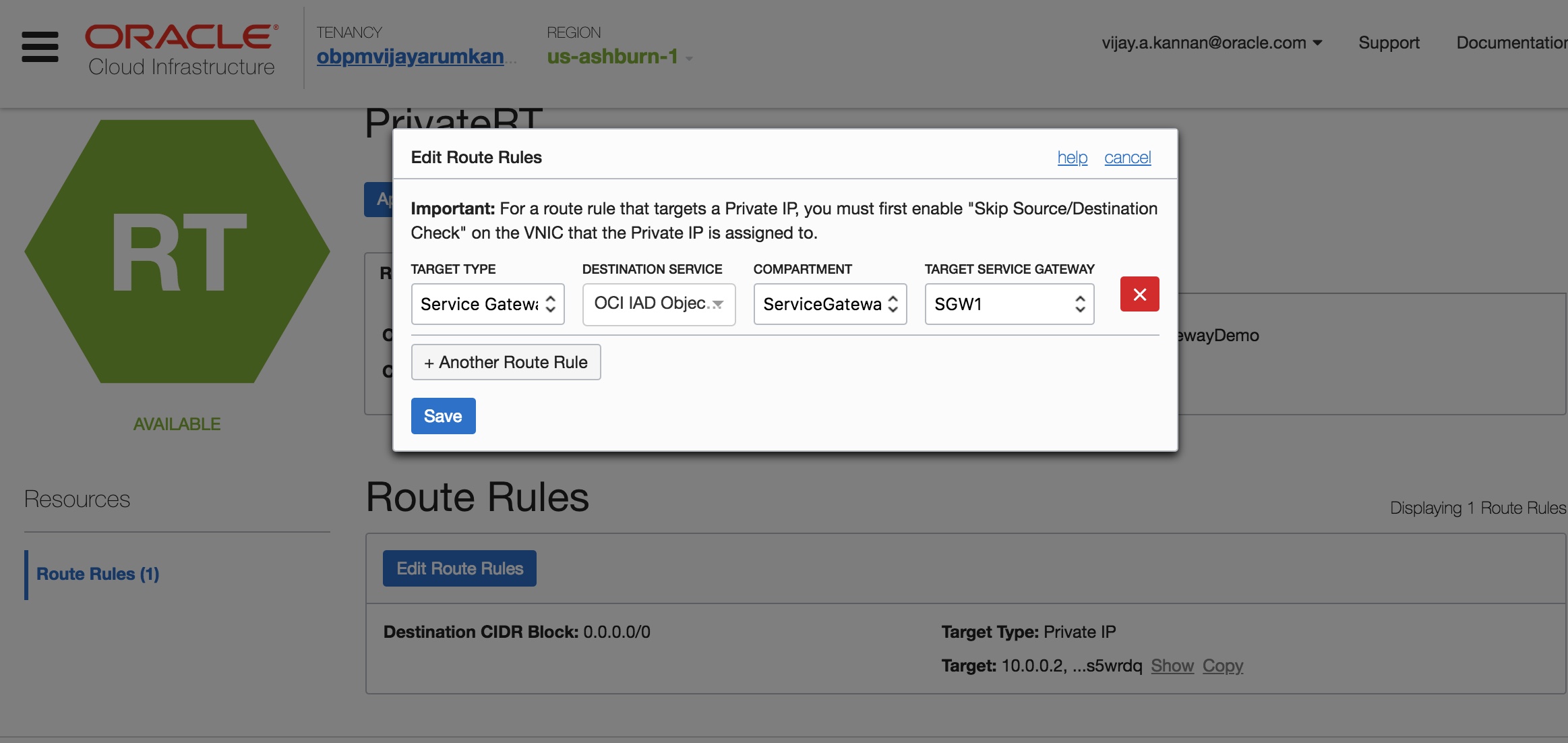 - For traffic to be routed from a subnet in your VCN to the service gateway, add a route rule accordingly in the private subnet’s route table.