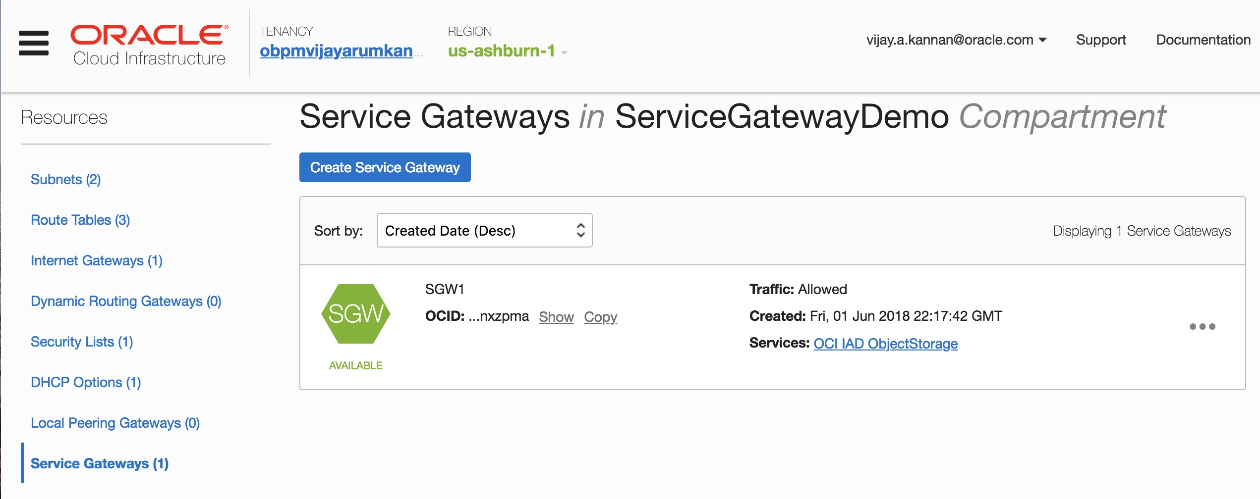 - You create a service gateway as a resource in the VCN just like you did with an internet gateway