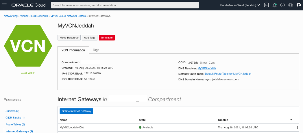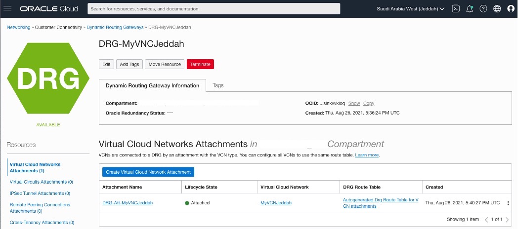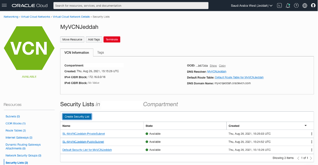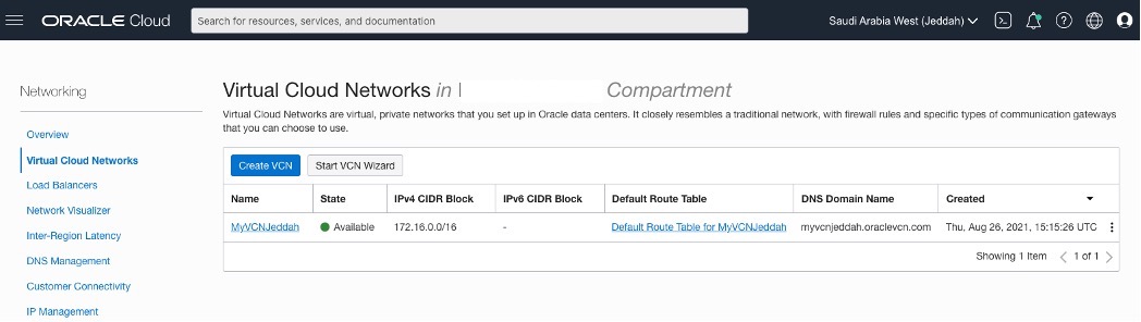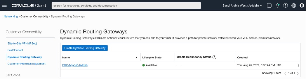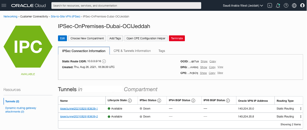 Creating an IPSec Connection in the OCI – Saudi Arabia West (Jeddah) region.