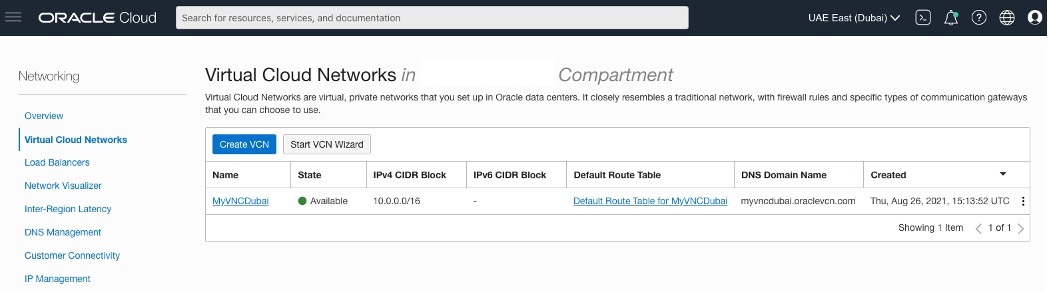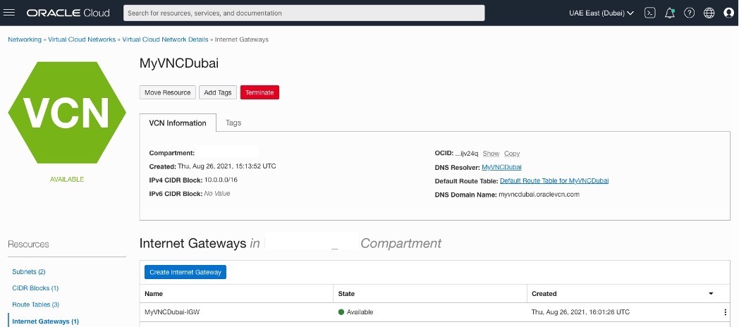 OCI – Uast Dubai – On-Premises – One for public subnet and the other for private subnet and attach the Route Table and Security List accordingly.