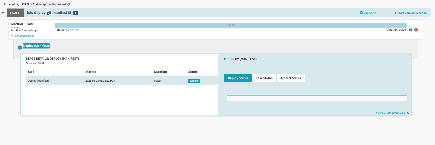 We’re running our pipeline that’s targeting the oracle cluster, and we have successfully deployed the hello-world application to that target cluster.