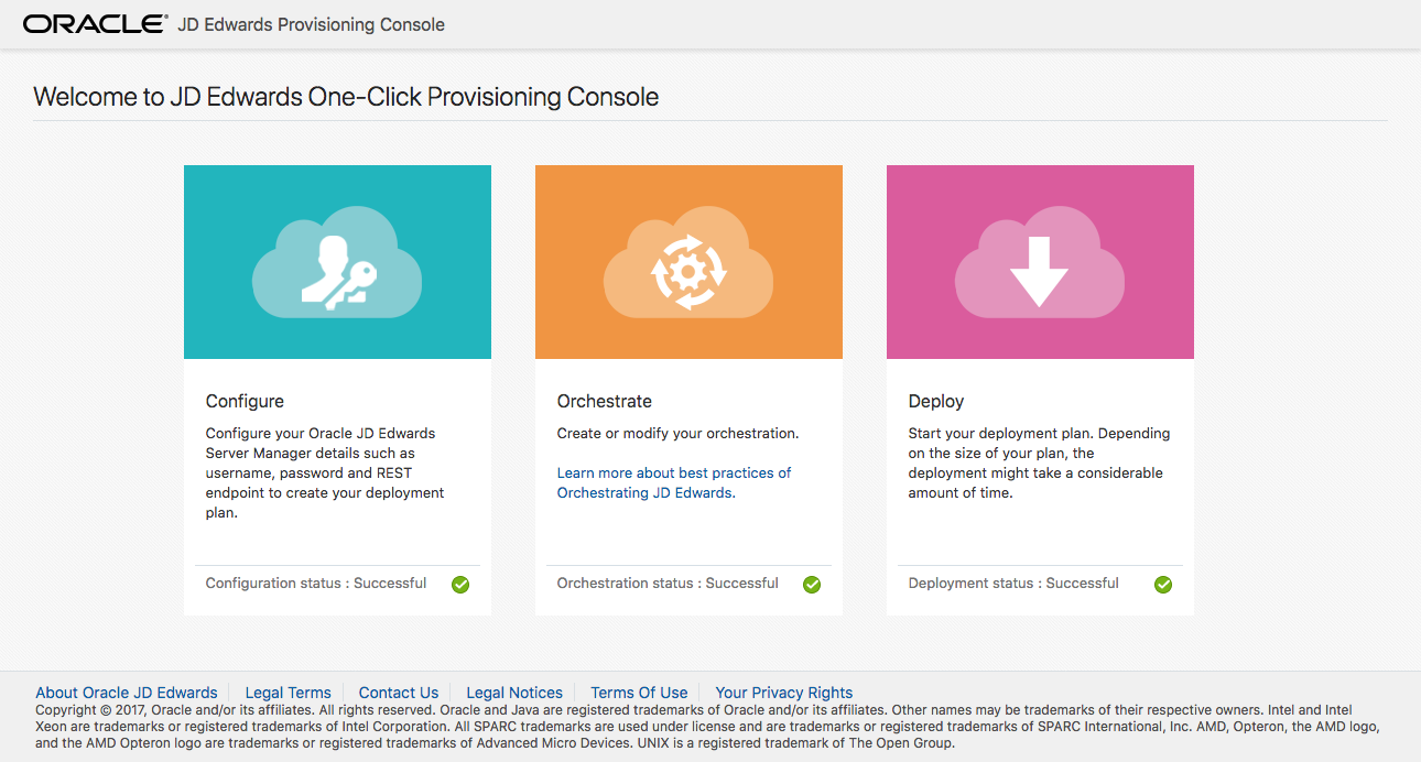 The One-Click Provisioning tool is ready to begin the orchestration and deployment of JD Edwards.