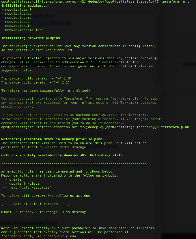 Initialize Terraform by running the terraform init and terraform plan commands (the following output is truncated for brevity):