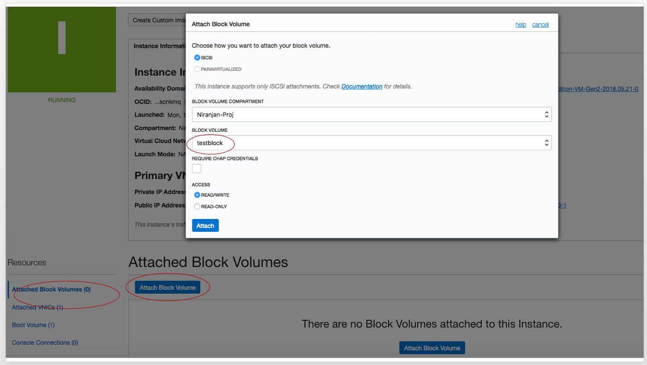4. Choose the local boot volume to install the Windows server and SQL server binary, and all the required supporting tools. However, use the block storage volume to store the SQL Server database. The following screen shows the block storage volume added to the Windows server.