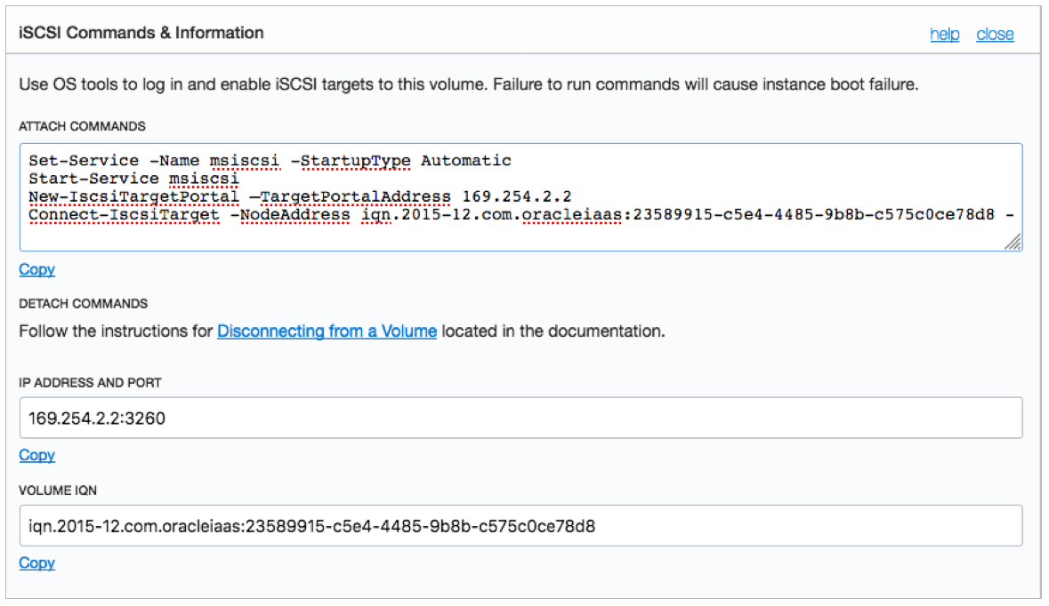 5. Run the following command using Windows server PowerShell as an administrator to enable iSCSI to target this block volume at the Windows operating system level.
