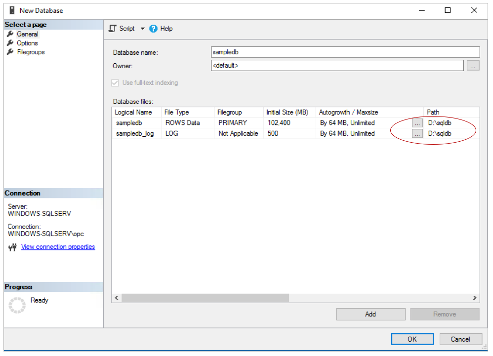 3. You can store the application database’s datafile and logfile in the block storage which is already mounted and leveled on the Windows server. In this blog post, we use a block storage volume and attach it to the Windows server. Format and label the new disk as “D”. Now, we use the “D” drive to store the datafile and logfile of the newly created application database.