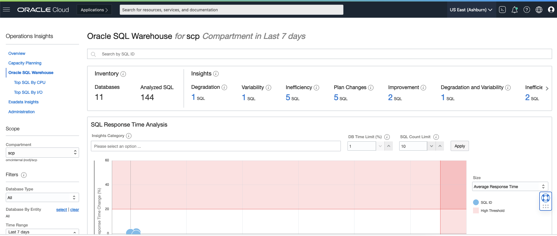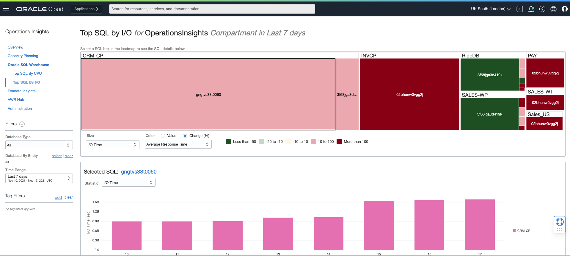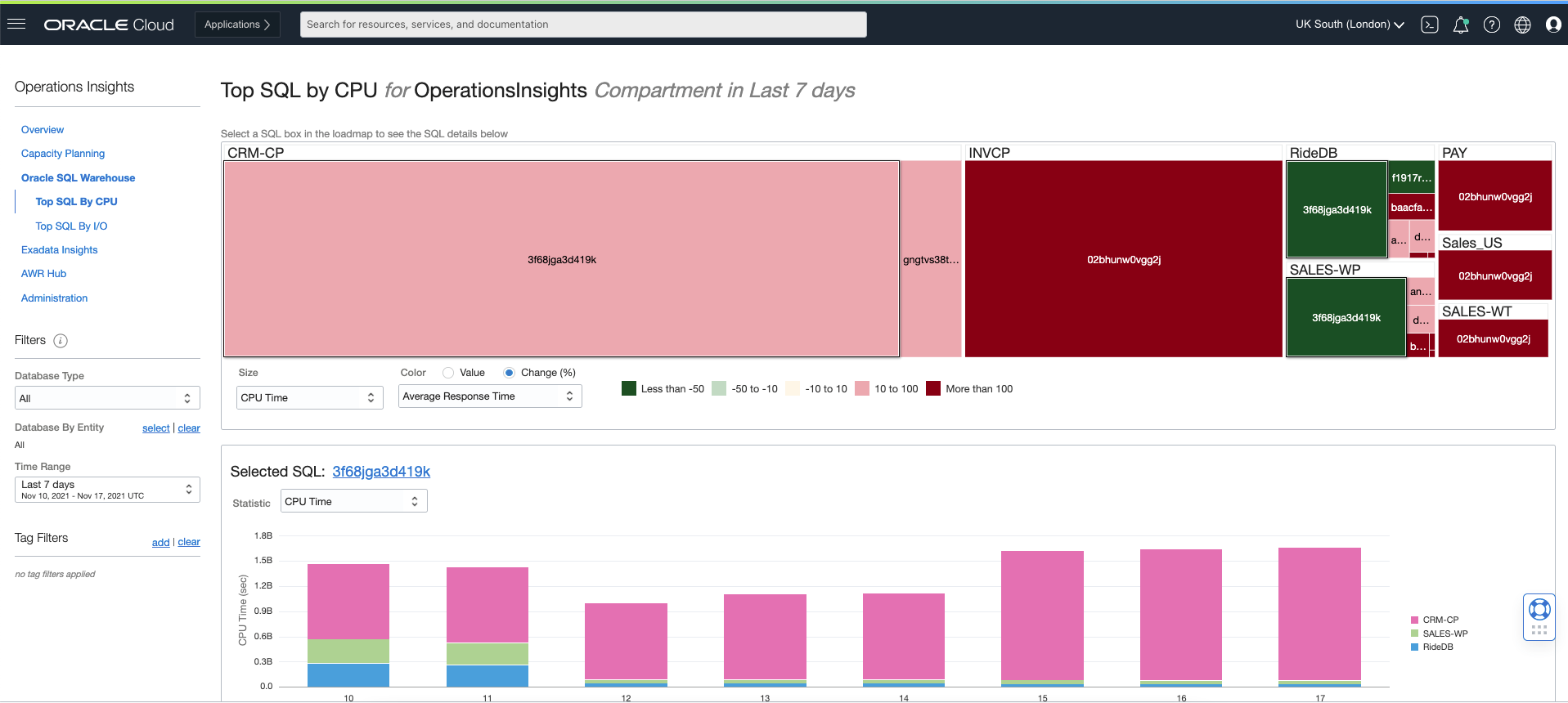 Using the Oracle SQL Warehouse function of Operations Insights to analyze the SQL performance problems for enterprise-wide applications across a fleet of databases. In addition, Operations Insights provides trends and key insights to SQL performance issues thereby helps to be proactive in avoiding future problems.
