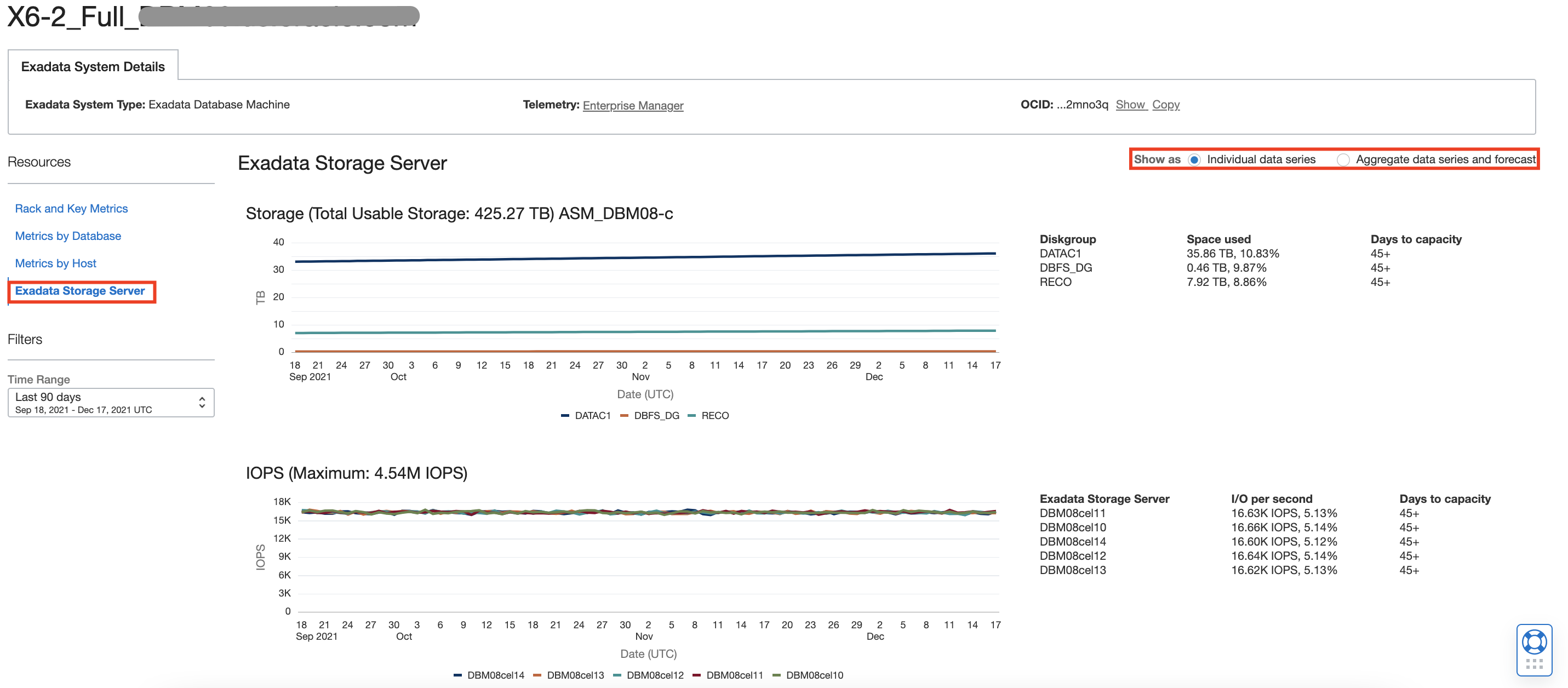 Figure 11:  Exadata Storage Server analysis with OCI Operations Insights