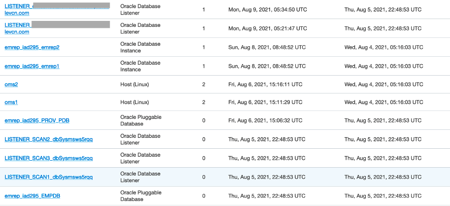 - The EM targets which represent the on-premises resources are equivalents of entities in Oracle Cloud Logging Analytics. Therefore, you can leverage the discovered targets in EM to achieve faster onboarding in Logging Analytics.