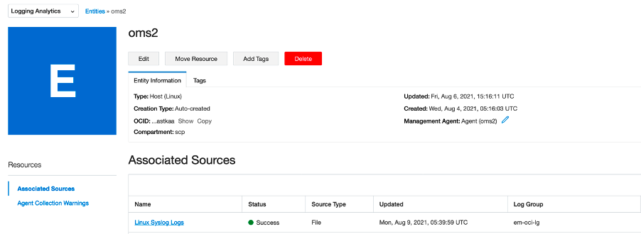 - Relevant target metadata in EM is stored as entity properties in Oracle Cloud Logging Analytics enabling better monitoring of those EM resources.