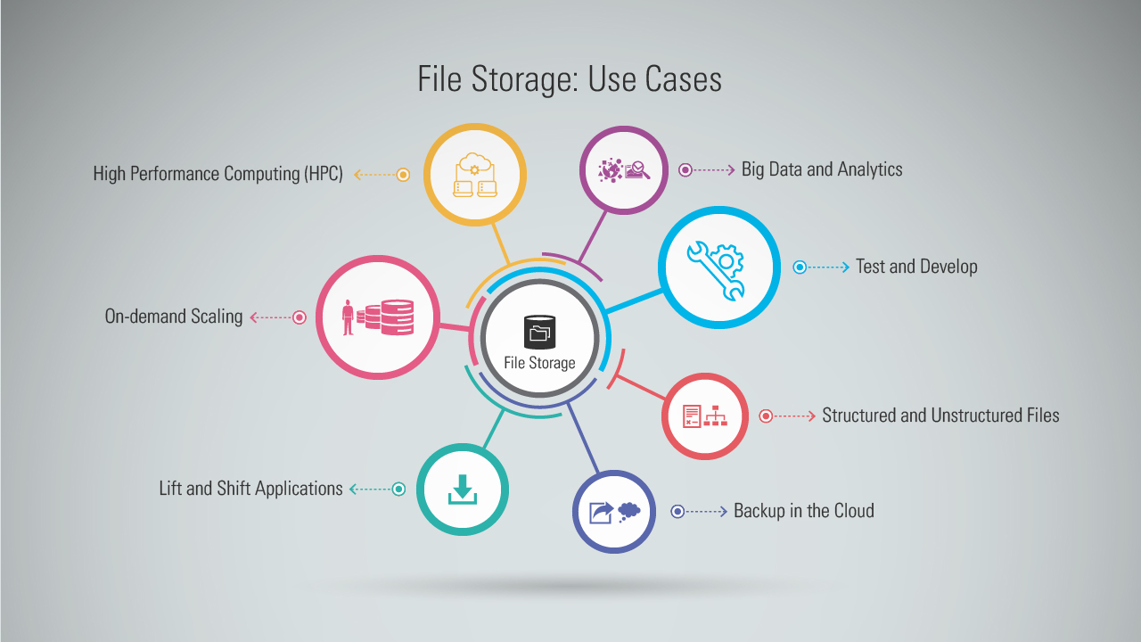 Big data and analytics workloads on Oracle Cloud Infrastructure File Storage benefit from distributed shared file systems for storing persistent data, and for accessing to an unlimited pool of file system capacity for managing growth of both structured and unstructured data, as well as for running Test and Dev workloads.