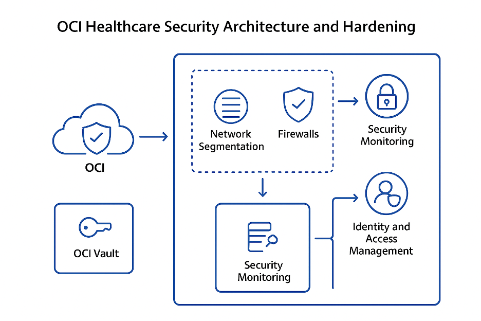 OCI’s security-first architecture provides primitives that healthcare teams must adopt and extend: