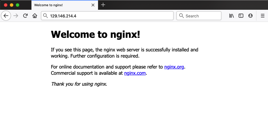 Open a web browser to verify the Nginx page using the load balancer public IP info gathered in the previous step
