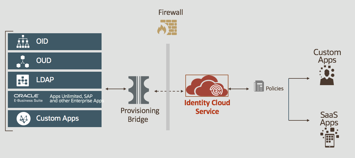 Comprehensive security for applications requires life-cycle management of application identities in addition to single sign on. The IDCS provisioning bridge can be used to streamline account life-cycle management with on-premises components and enterprise applications. With the IDCS provisioning bridge organizations can perform authoritative sync, account provisioning and group management in generic LDAP servers such as OID, OUD, ODSEE and Apache DS. The IDCS provision bridge will also enable account, role and responsibility management in apps such as EBS and PeopleSoft.
