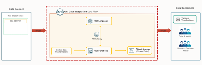 - OCI Data Integrator extracts data from SQL Server and loads into an Object Storage bucket.