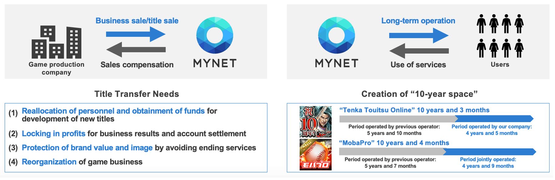 Another interesting characteristic of the gaming industry is that the revenue for a game title goes down gradually, and if the title’s cost is steady, losses are incurred. At that point, most game content-producing companies usually close the title. Here, Mynet comes into the picture.