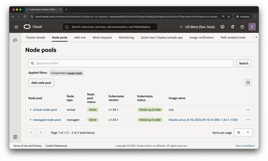- Virtual Nodes: This is OKE’s serverless Kubernetes experience. Virtual nodes abstract away the underlying infrastructure entirely, allowing users to run containers at scale without the need to manage, scale, upgrade, or troubleshoot the node infrastructure. They are perfectly suited for highly elastic, stateless applications.