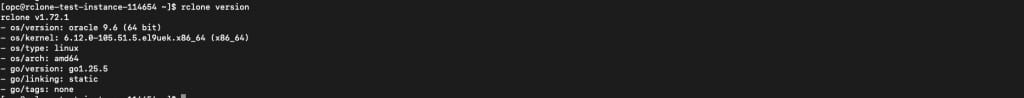 Install rclone on a VM machine on Sendertenant. Follow the link https://rclone.org/downloads/ for rclone installation. Verify successful installation of rclone with the command:rclone version